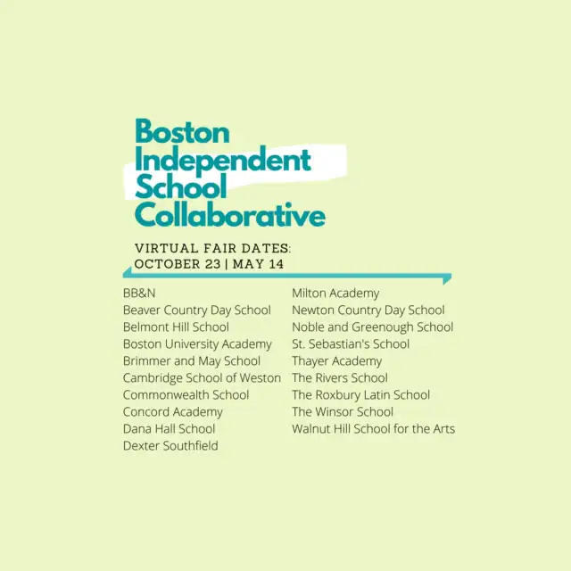 Join us to hear from a panel of Admissions Directors from 19 Boston-area Independent Schools talk about mission-driven education, high academic standards, individualized student experiences, educating the whole child, and other topics relevant to the applicant’s journey towards enrollment. The program will begin with a panel, followed by Zoom meeting rooms to allow families to connect with individual schools and learn more about their specific programs and admission processes.