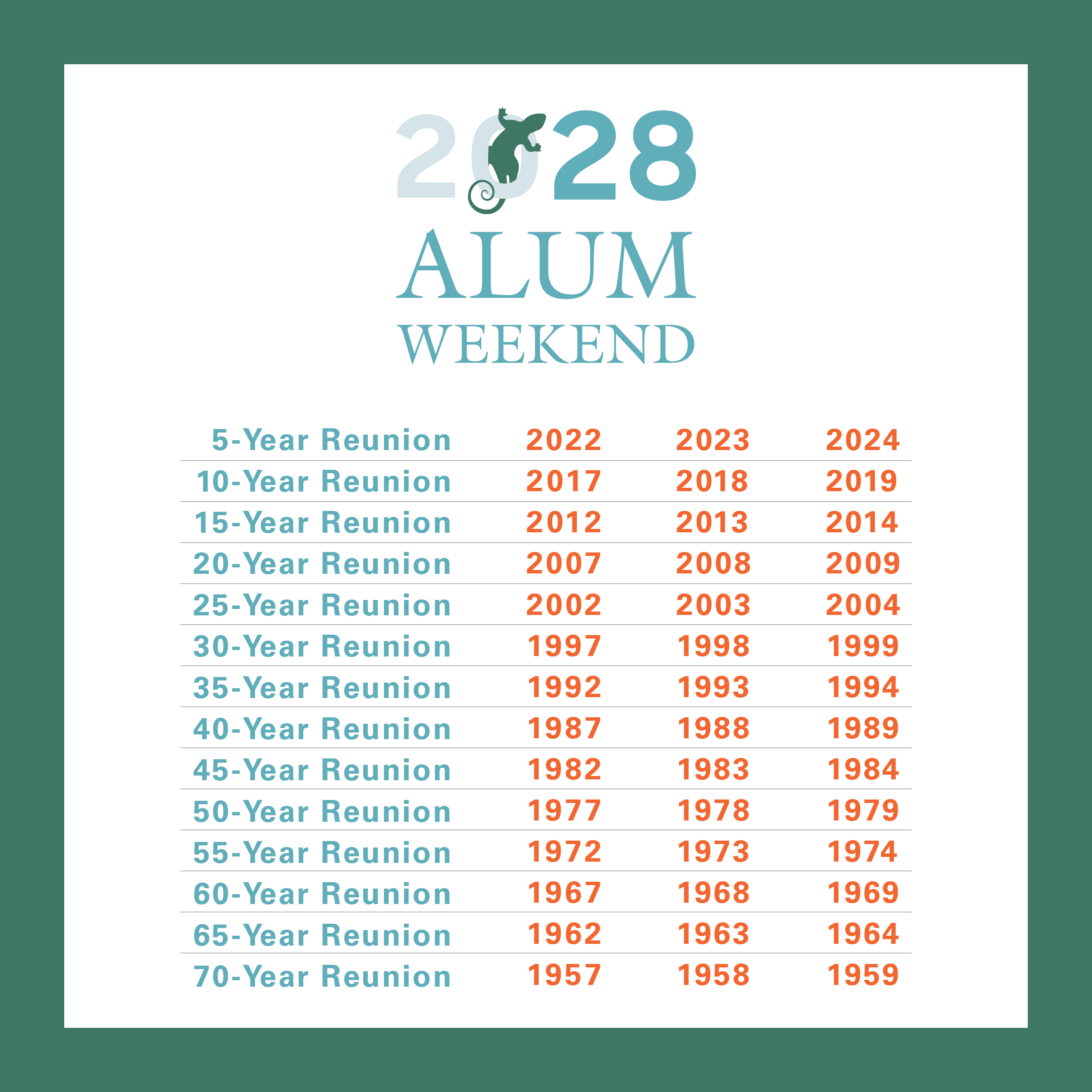 The first multiyear reunion will be held in 2028. Mark your calendars for this exciting event!