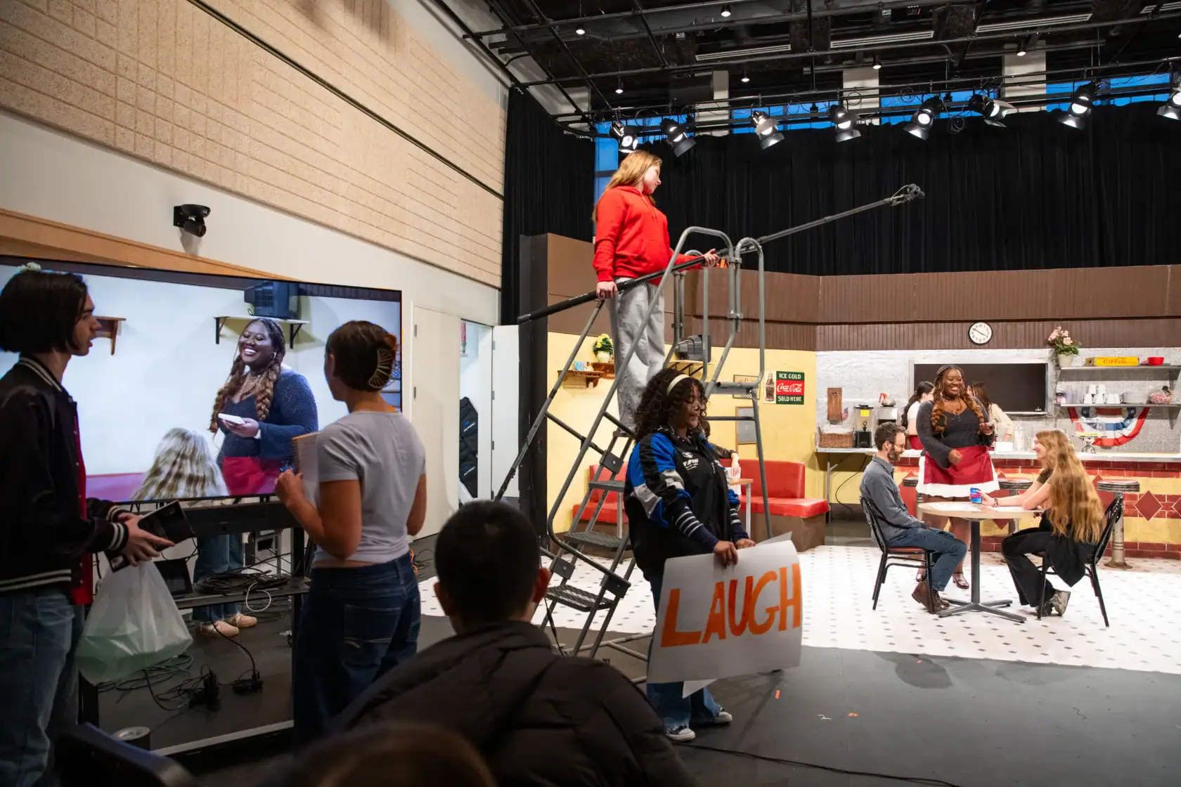 This year, Visual Arts Department Head Justin Bull P’25 ’28 and theater teacher Shelley Bolman P’27 launched The Sitcom Project, a new initiative centered on serialized storytelling. After spending the fall writing an original sitcom series, Cackleberries, students are now deep in production, filming seven episodes on a standing set in the Centennial Arts Center’s Spencer and Colton P3 Lab in front of a live studio audience. New episodes drop weekly on Fridays. Catch the latest episode below or visit Concord Academy’s YouTube page. Enjoy the show.