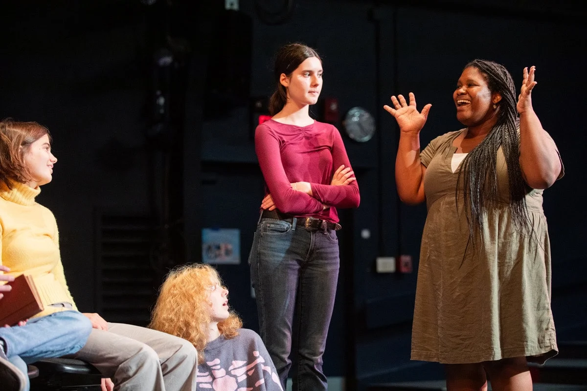 Aviva Jeffrey ’24 and Sophie Laurence ’24 are both assistant directors for this production, in addition to performing onstage. “If you’re in this cast, you feel like your opinion matters,” Aviva says. “Regine treats us with so much respect.”